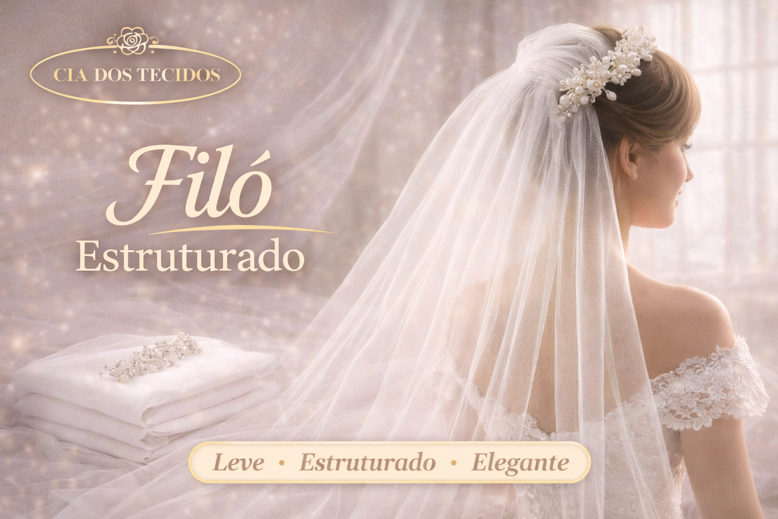 O filó é um tecido leve, transparente e com estrutura firme, ideal para criar volume e armação em peças de vestuário e decoração.